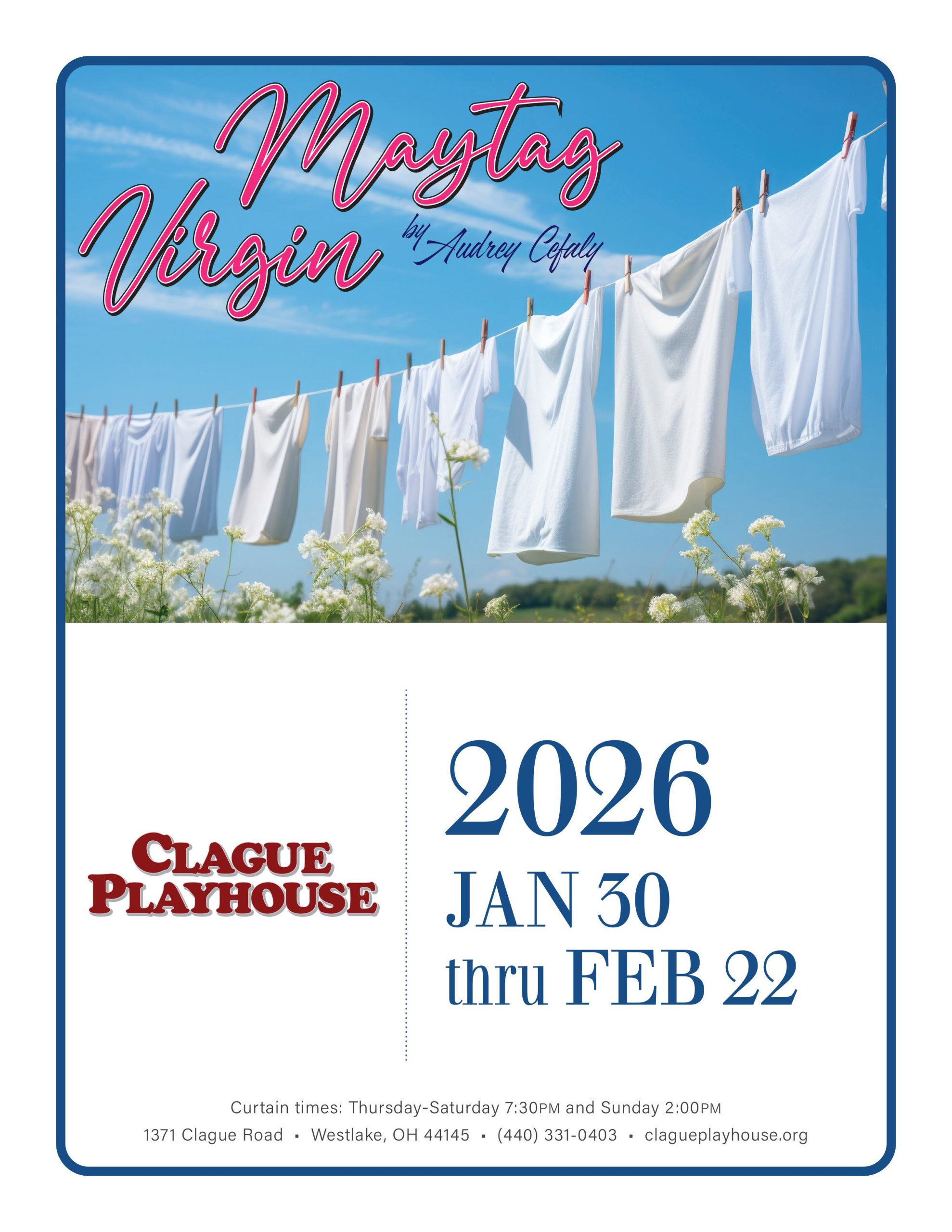 A classic love story by southern regionalist Audrey Cefaly, Maytag Virgin follows Alabama school teacher Lizzy Nash and her new neighbor, Jack Key, over the year following the tragic death of Lizzy’s husband. The play explores the ideas of inertia and self-enlightenment, and the bridge between the two.