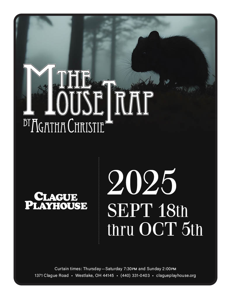 Agatha Christie’s iconic murder mystery is the world’s most successful and longest-running play. After a local woman is murdered, the guests and staff at Monkswell Manor find themselves stranded during a snowstorm. It soon becomes clear that the killer is among them and the seven strangers grow increasingly suspicious of one another. A police detective, arriving on skis, interrogates the suspects: the newlyweds running the house; a spinster with a curious background; an architect who seems better equipped to be a chef; a retired Army major; a strange little man who claims his car has overturned in a drift; and a jurist who makes life miserable for everyone. When a second murder takes place, tensions and fears escalate, culminating in a brilliant surprise finish.